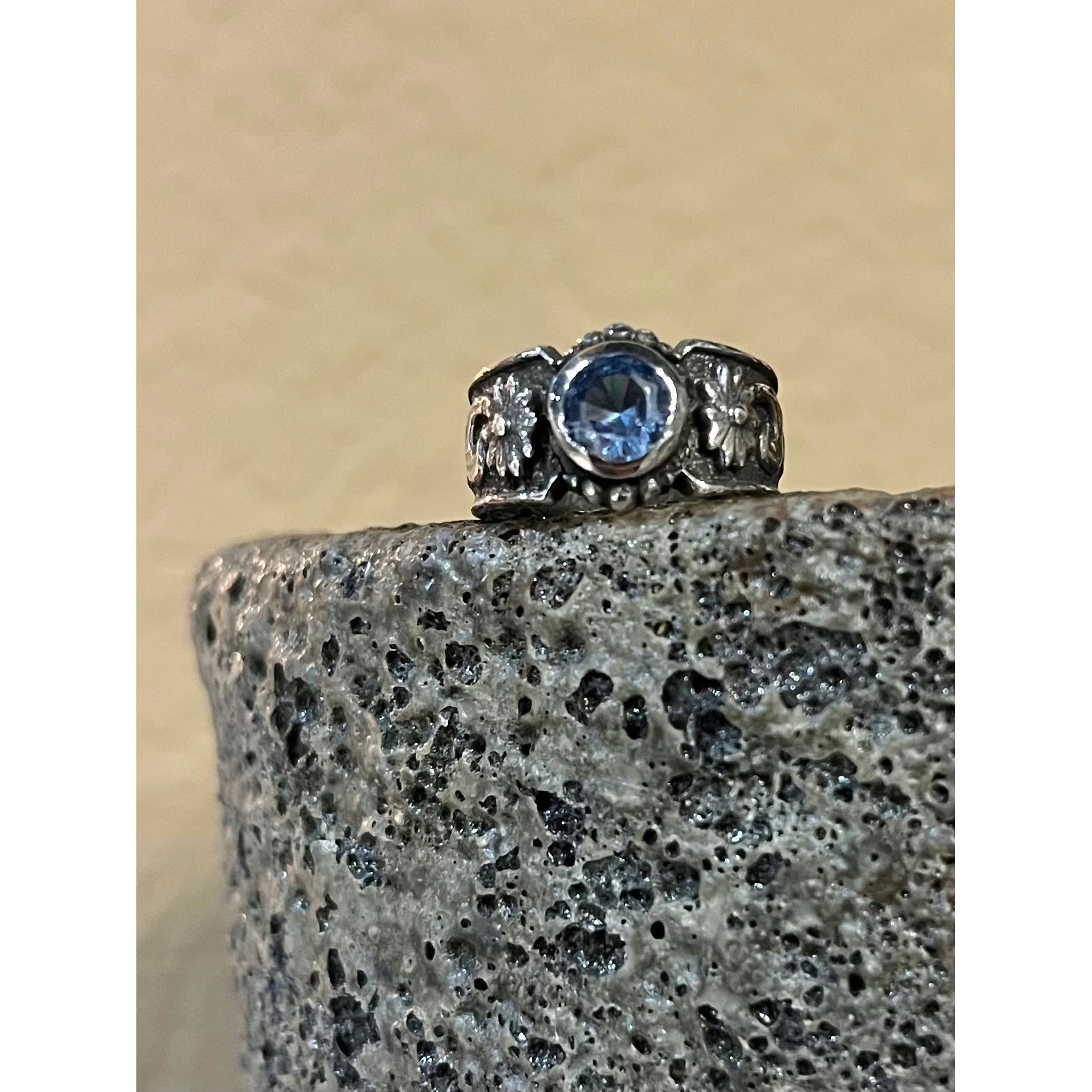 The "Samantha" is an absolutely gorgeous sterling silver ring with a western style engraved scroll with a flower overlay on either side of the tapered band and features a 6mm round bezel.